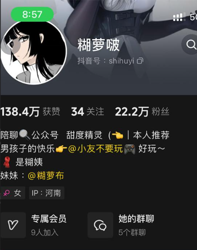 - 抖音号: heishihuyi60